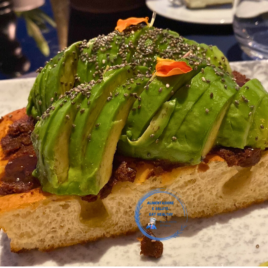 Avocado-Toast auf Focaccia auf meine Art, eines der Gerichte, die ich in einem der schönsten Restaurants in Montecarlo anlässlich meines dreißigsten Hochzeitstags probiert habe.