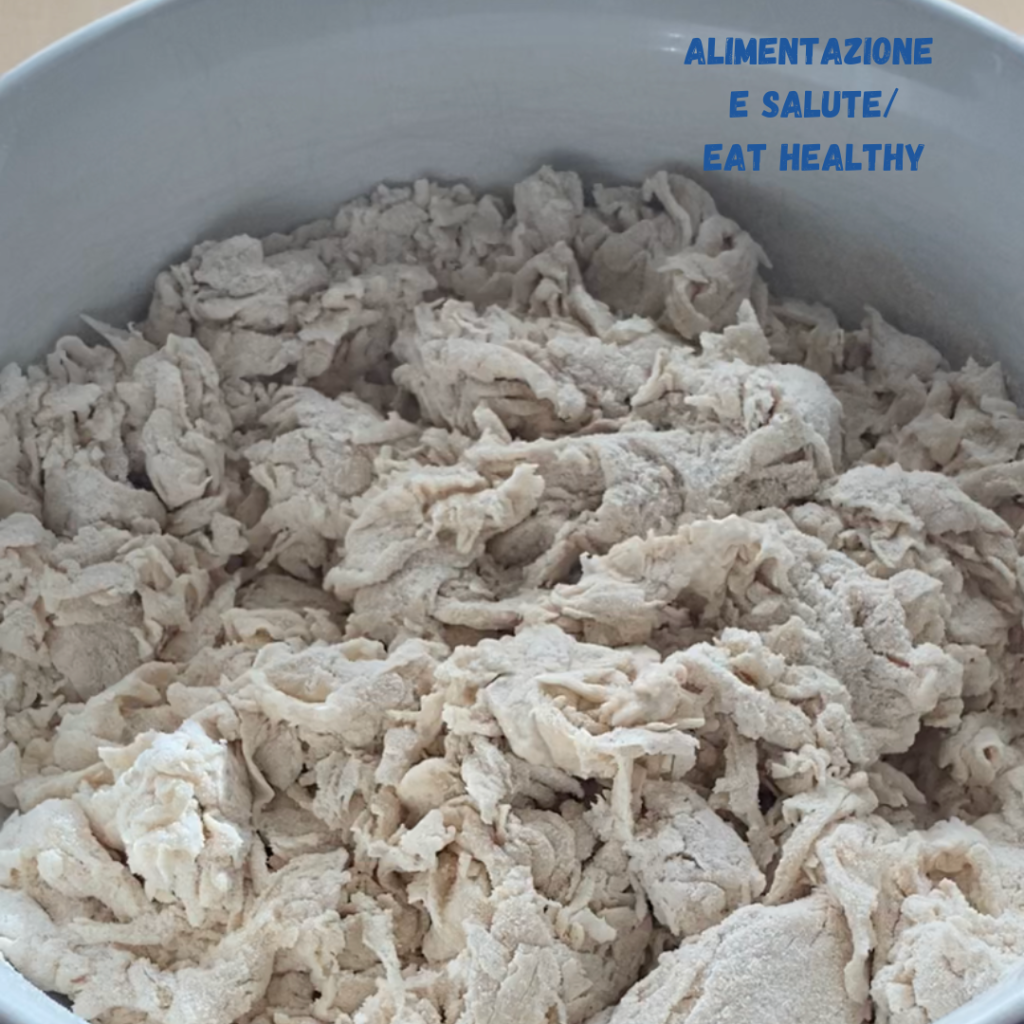 • Die Autolyse vorbereiten, indem man das Mehl 0 und das Dinkelmehl in eine Schüssel gibt (Foto 1). Man kann das Dinkelmehl durch reines Mehl 0 ersetzen.
