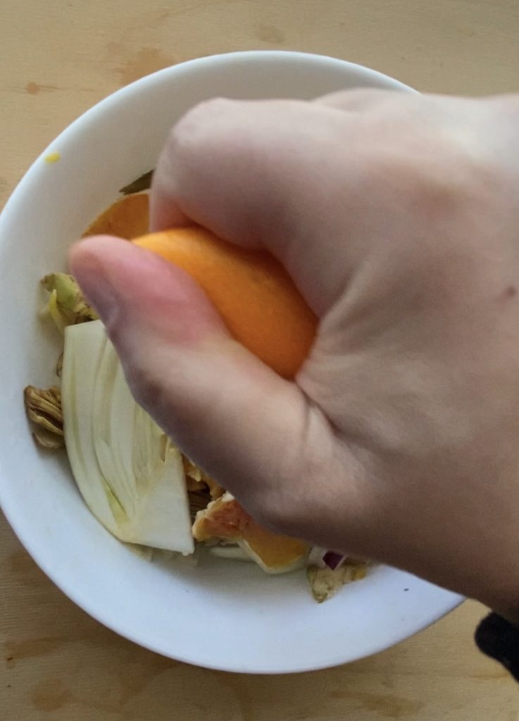 - nach Bedarf Orangensaft (eine Orange auspressen, um den Salat für zwei Personen zu würzen)
