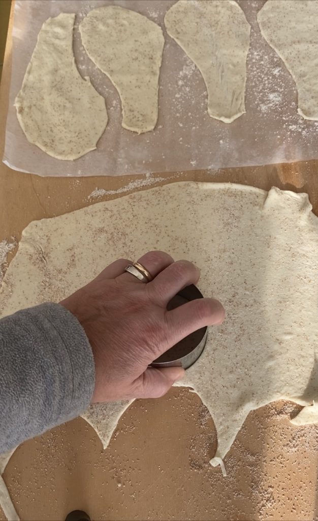 Mit einem Ausstecher aus dem Teig runde Formen machen