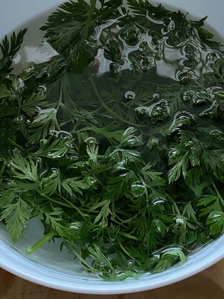 Trennen Sie die harten Stängel von den Blättern und kochen Sie sie ein paar Minuten.