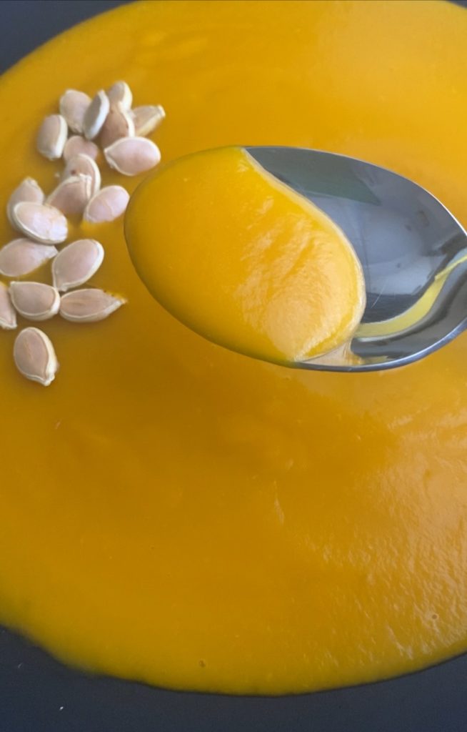 Kürbissuppe: die Sonne auf dem Teller. Es ist mein bevorzugtes Comfort-Food geworden, und zu denken, dass ich Kürbis nie gemocht habe. 🙂