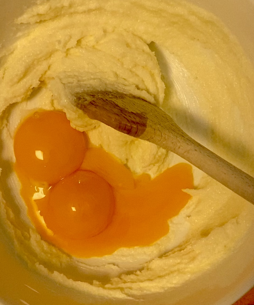 Arbeite die in der Mikrowelle geschmolzene Butter mit dem Zucker.