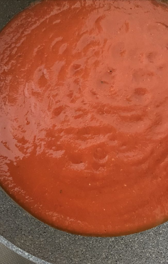 • Die Tomatencreme in eine Pfanne geben. In der Zwischenzeit die Pasta kochen.