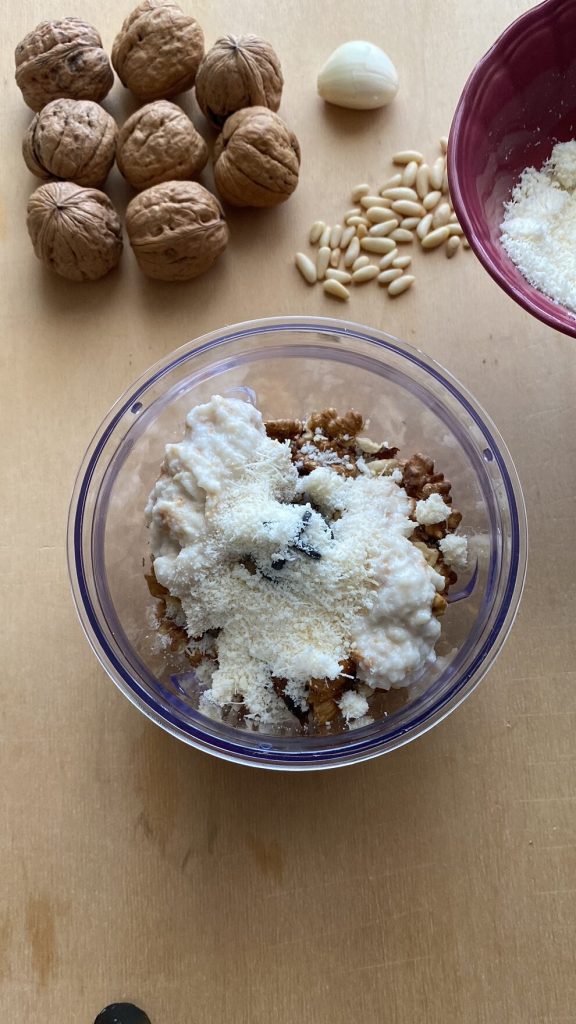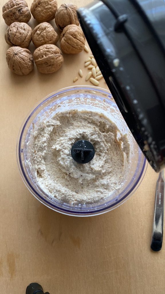 • Mixen, eventuell etwas Milch hinzufügen, um die Walnusssoße weich zu halten.
