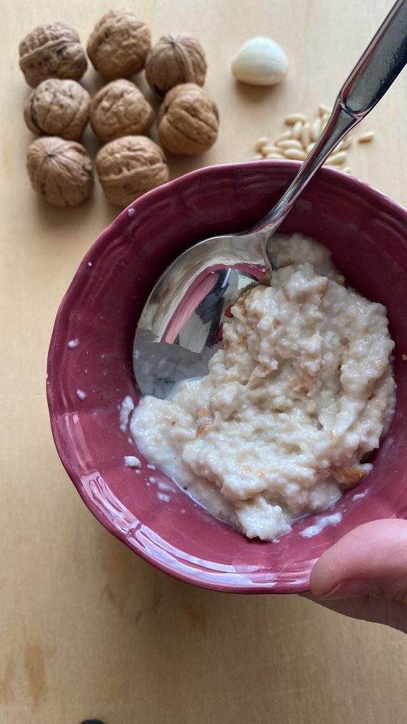 Die Pasta mit Walnusssoße auf genuesische Art ist ein traditionelles Gericht der ligurischen Küche, das die Süße der Walnüsse mit der Cremigkeit einer umhüllenden Soße kombiniert, perfekt zum Würzen von Pansotti, die mit Spinat und Ricotta gefüllte Teigtaschen sind. Für mich ist es aber auch köstlich mit normaler, am besten kurzer Pasta, da ich finde, dass sie sich nicht eignet, um lange Pasta wie z.B. Spaghetti zu würzen.