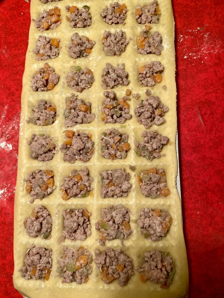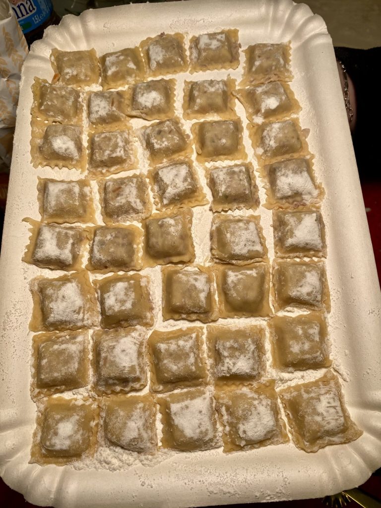 In meiner Familie ist es Tradition, für das Weihnachtsessen Fleischravioli zuzubereiten.