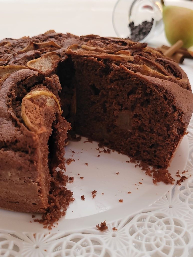 Hier ist Ihr Birnen-Schokoladenkuchen, bereit zum Genießen 😋😋
