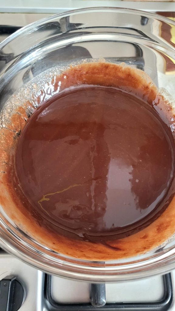 Rühren Sie mit einem Spatel vorsichtig um, bis die Schokolade vollständig geschmolzen ist. Lassen Sie sie abkühlen.