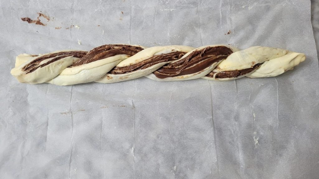 Backen im Ofen des Blätterteigkranzes mit Nutella