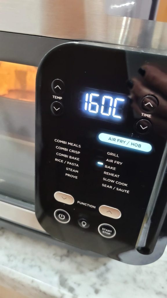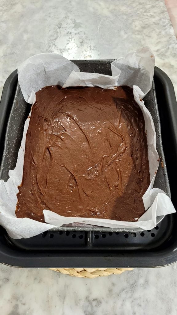 • Setzen Sie die Form in die Heißluftfritteuse und backen Sie 30 Minuten bei 160° im Programm Backen oder Luftfrittieren