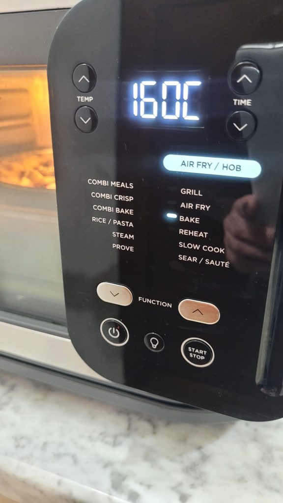 Wie bei einem Ofen ist jede Heißluftfritteuse anders: Überprüfe die Torte in den letzten Minuten des Backens, um zu vermeiden, dass sie oben zu dunkel wird.