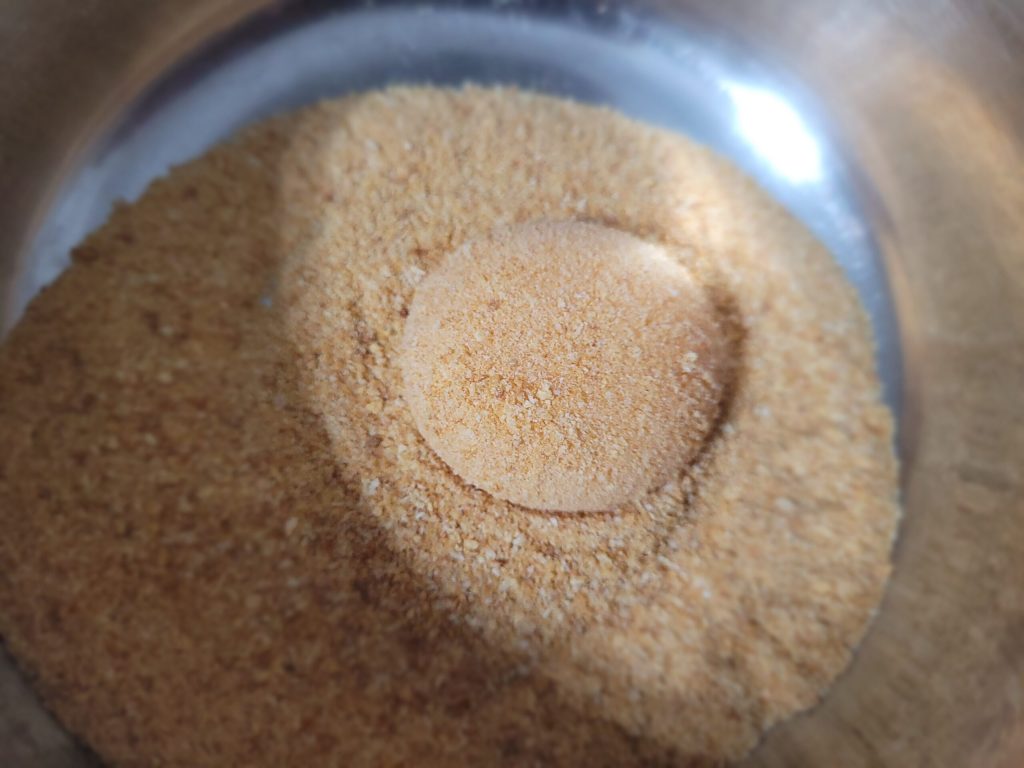 Bewegen Sie die Schüssel vorsichtig in kreisenden Bewegungen, damit das Paniermehl haftet