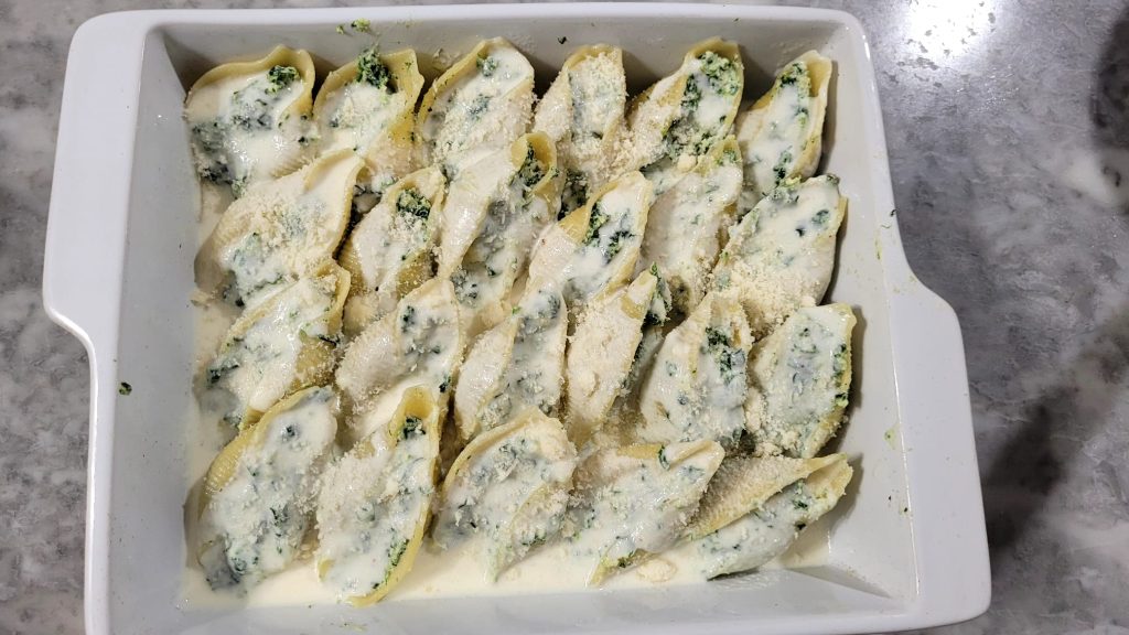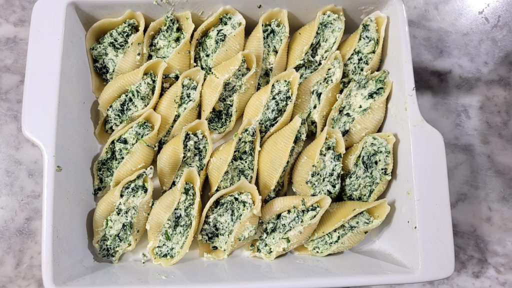 Tipps für das Backen im Ofen der gefüllten Conchiglioni mit Ricotta und Spinat mit Pecorino-Creme