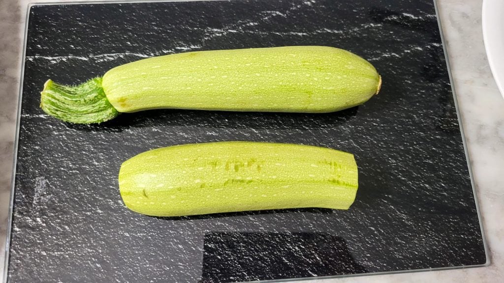 Waschen Sie die Zucchini gut und entfernen Sie auf einem Schneidebrett oder einer Arbeitsfläche beide Enden.