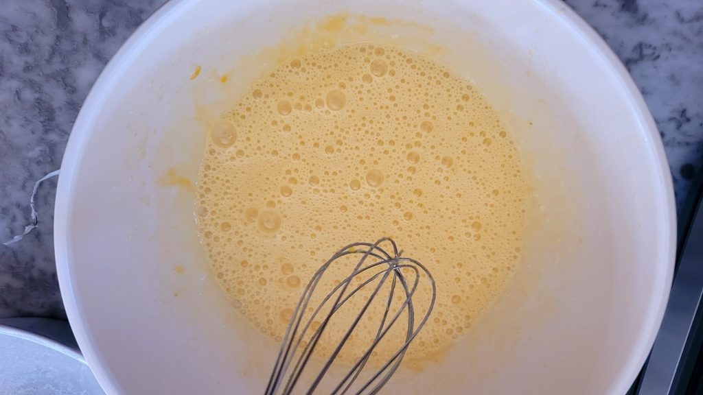 Arbeiten Sie sie mit dem Schneebesen, bis Sie eine helle und schaumige Masse erhalten.