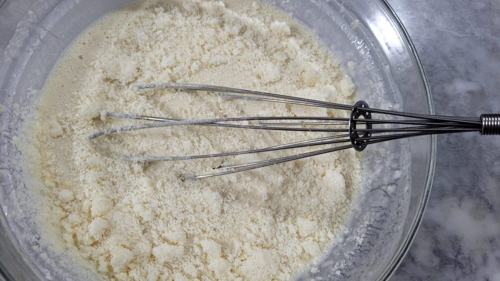• Fügt nach und nach das Mehl hinzu und rührt weiter mit einem Schneebesen