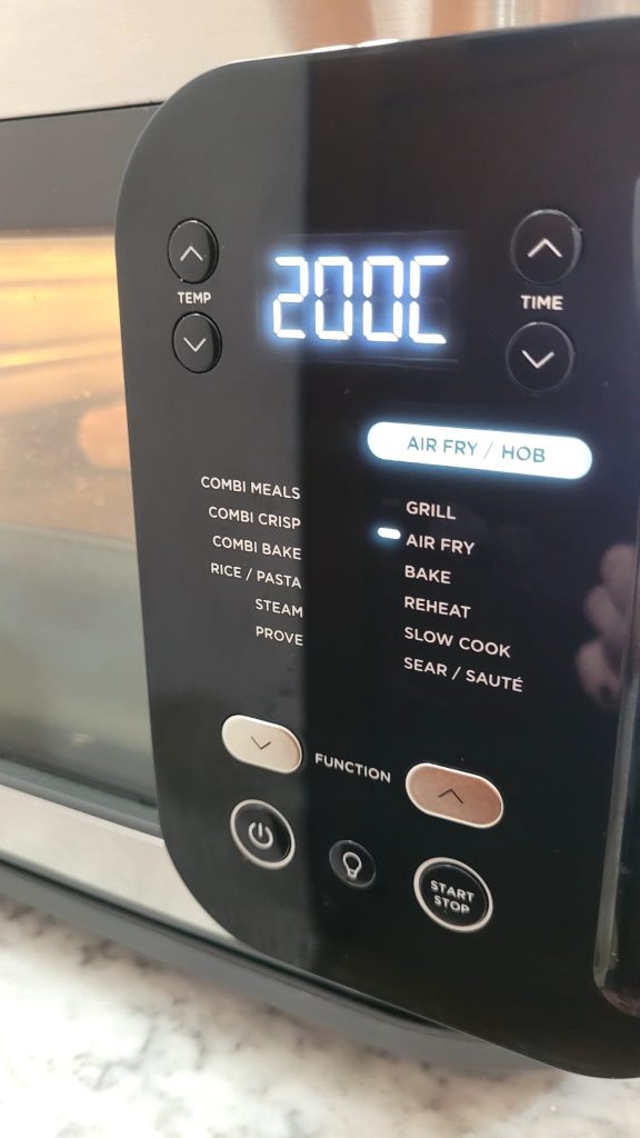 Um die Knusprigkeit wiederherzustellen, erwärmen Sie ihn in der Heißluftfritteuse bei 180°C für 3–4 Minuten.