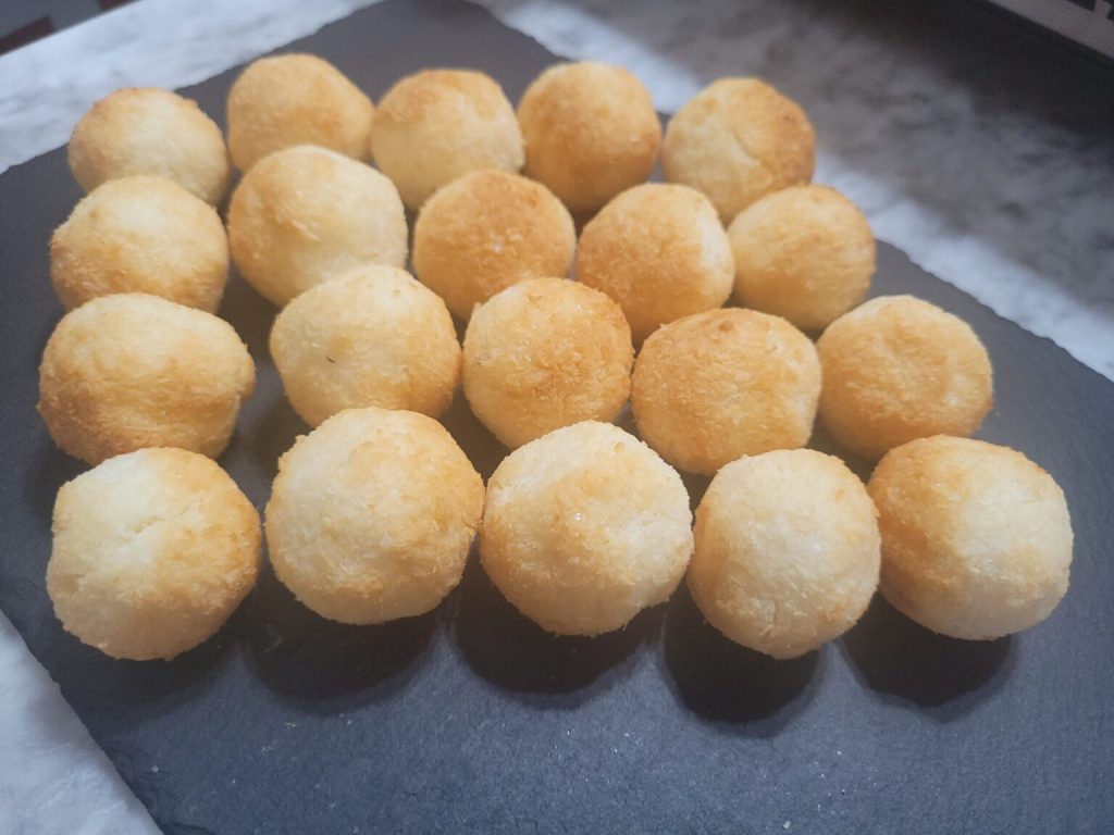 Die Kugeln direkt auf den Rost der Heißluftfritteuse legen oder auf ein Backblech, wenn ihr den Ofen verwendet. Bei 160° für 13 Minuten in der Heißluftfritteuse oder im vorgeheizten Ofen bei 180° für ca. 15 Minuten backen, bis die Oberfläche goldbraun ist.