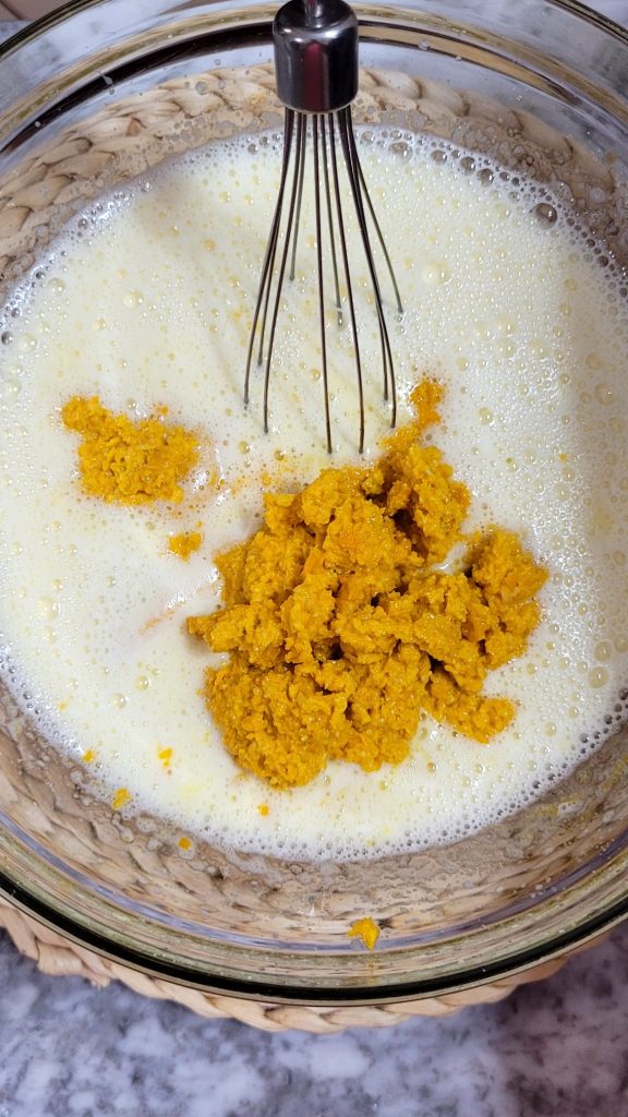 • Fügen Sie das Kürbis-Mandel-Püree hinzu und vermischen Sie die Masse.