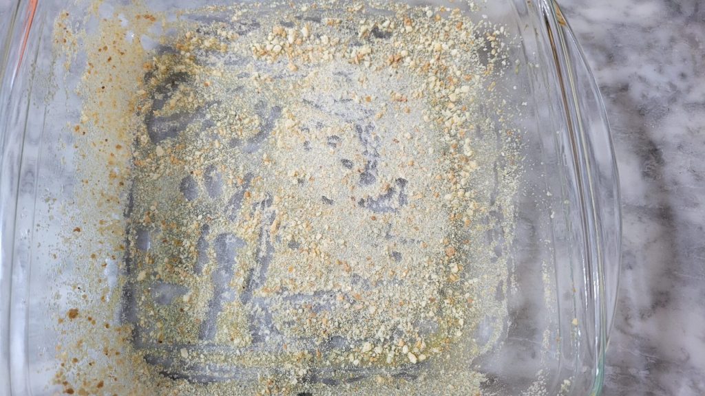 Bestreuen Sie die Oberfläche mit Paniermehl und geriebenem Parmesan