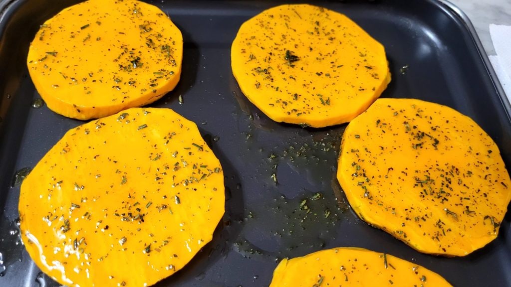 Sehen wir uns an, wie die Kürbismedaillons in der Heißluftfritteuse zubereitet werden