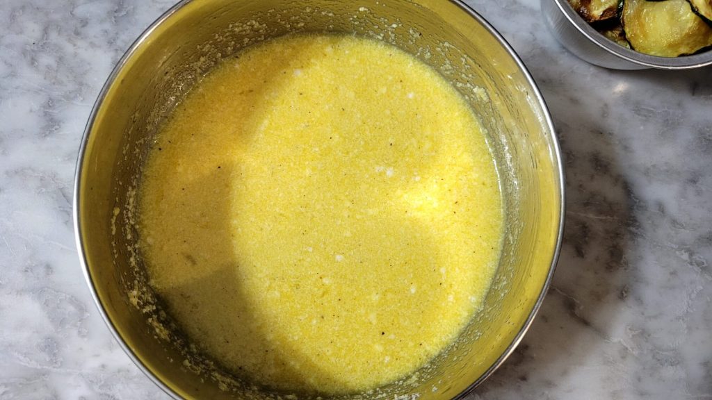 • Schlagt in einer Schüssel das Ei mit der Milch, dem geriebenen Grana, einer Prise Salz und Pfeffer nach Belieben