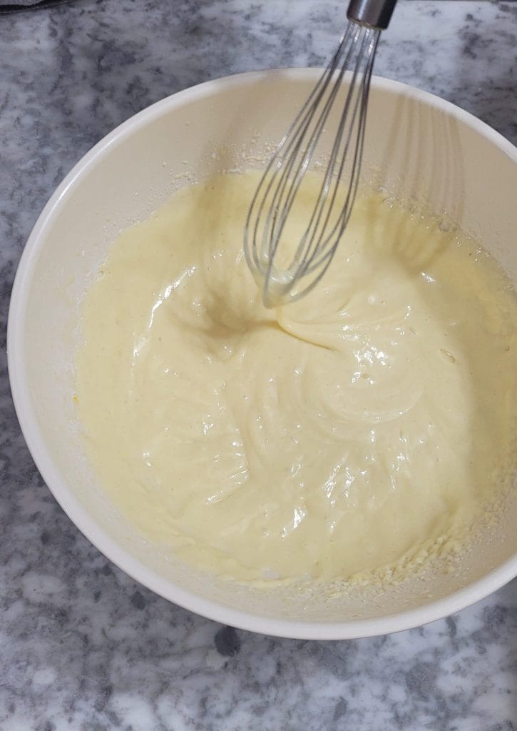 Rühren Sie weiter mit dem Schneebesen, bis Sie eine glatte und homogene Masse ohne Klumpen erhalten