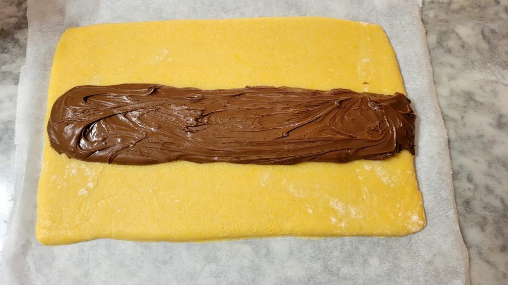 Die Nutella-Cookies in der Heißluftfritteuse sind einfach zuzubereiten, Sie müssen nur alle Schritte befolgen: Der erste ist das Ruhen des Mürbeteigs im Kühlschrank für mindestens eine halbe Stunde. Der zweite ist, die mit Nutella gefüllte Rolle für eine Stunde in den Gefrierschrank zu legen, so wird es einfach, sie zu schneiden, und die Füllung bleibt cremig und trocknet beim Backen nicht aus.