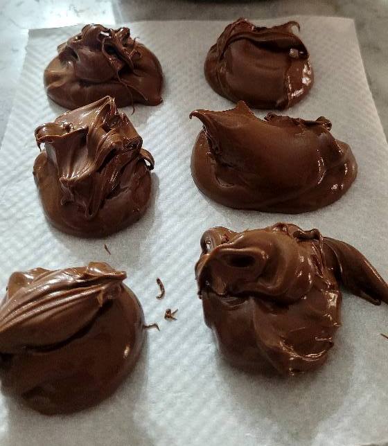 Beginnen Sie damit, 13 großzügige Teelöffel Nutella auf Backpapier zu geben und diese für 10/15 Minuten ins Gefrierfach zu stellen. Passen Sie die Menge an die Größe Ihrer Förmchen an. Wenn Sie Aluminiumförmchen verwenden, werden es weniger sein.