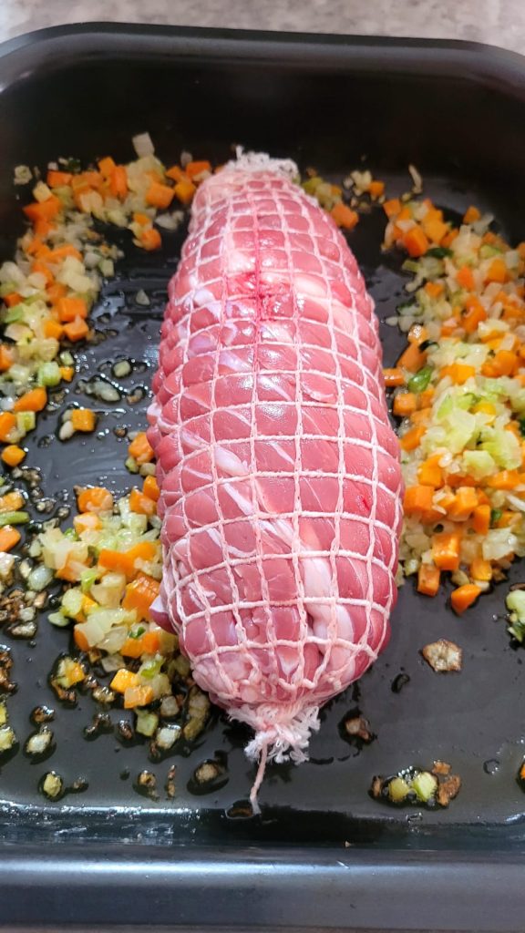 Im Ofen vorgeheizt auf 170°/180° 45/50 Minuten, je nach Gewicht des Fleischstücks. Die Schritte sind die gleichen wie beim Garen in der Heißluftfritteuse.
