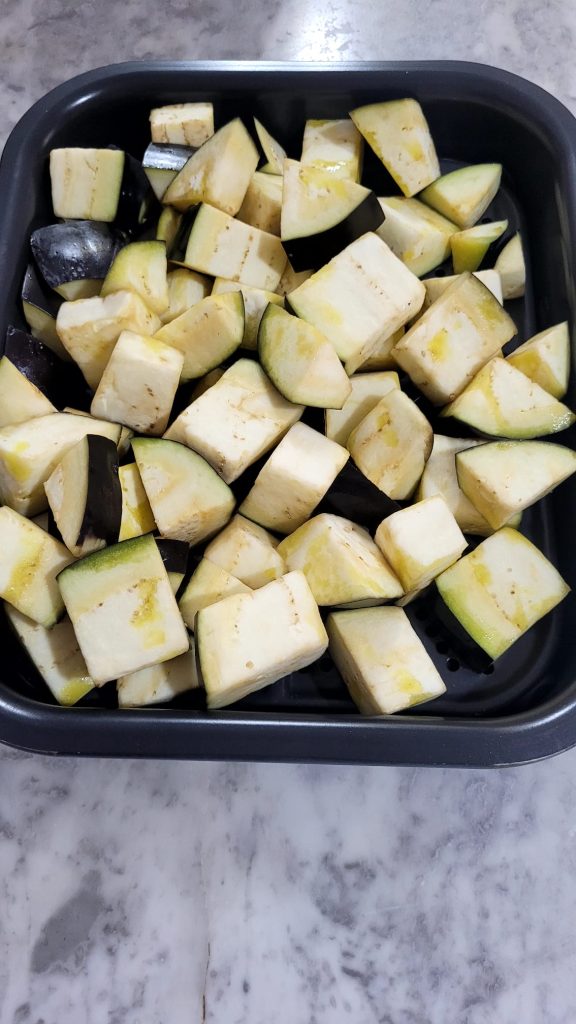 Aber jetzt folgen Sie mir, während ich Ihnen erkläre, wie Sie diese leckere Pasta mit Auberginen in der Heißluftfritteuse zubereiten