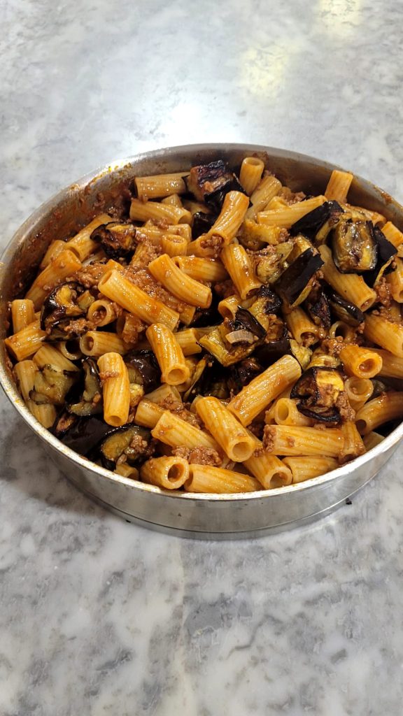 Sie können die Pasta mit Auberginen im Voraus zubereiten und später kochen oder, wenn Sie wenig Zeit haben, das Ragout und die Auberginen am Vortag zubereiten und die Pasta später zusammenstellen