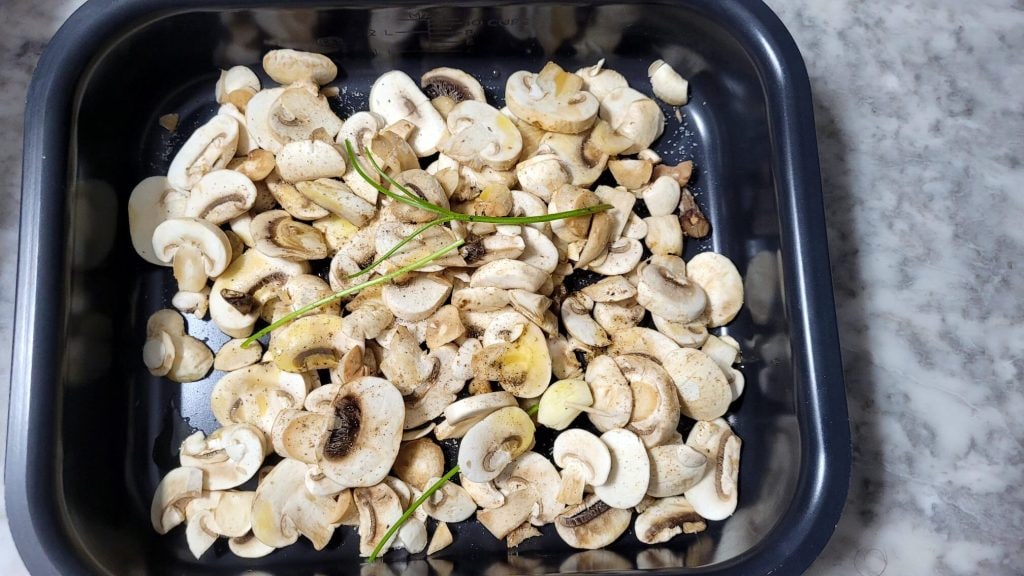 Um diese Pilze-Törtchen zu kochen, habe ich nur meine Heißluftfritteuse verwendet: Ich habe die Champignon-Pilze in einer Backform gekocht, und sobald sie fertig waren, habe ich sie in eine Schüssel zusammen mit Eiern, Mehl und Käse gegeben und sie in wenigen Minuten in Muffinförmchen gebacken, indem ich in die Mitte ein Stück Käse legte, um sie noch köstlicher zu machen.