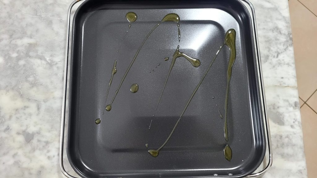 Da ich eine große Fritteuse habe, konnte ich ein 30 x 30 cm Blech verwenden, wenn ihr eine kleinere Fritteuse habt, könnt ihr mehrere Bleche machen, die in eure Fritteuse passen, wichtig ist, dass die Basis doppelt geschichtet ist. Ihr könnt die Zutaten auch durch andere ersetzen, die ihr bevorzugt oder zu Hause habt, und wenn ihr keinen Tomatenpüree habt, habe ich auch diese weiße Version Pane Carasau mit Stracchino in der Heißluftfritteuse, die fantastisch ist!
