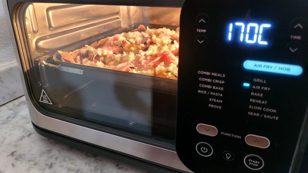 • Übertragen Sie die Backform in die Heißluftfritteuse und backen Sie bei 170° für 10 Minuten
