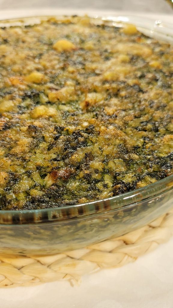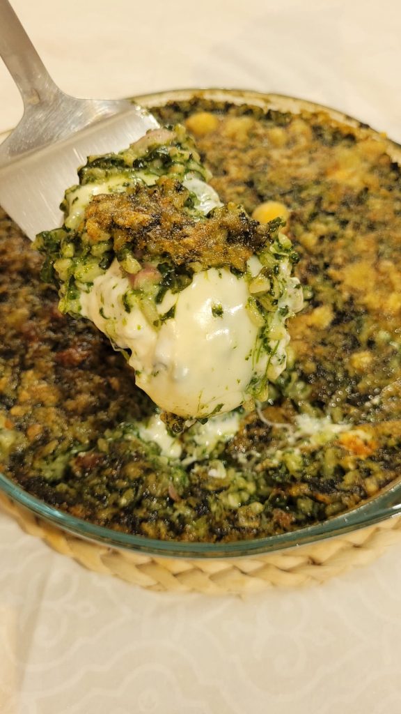 Zubereitung des Reis- und Spinatauflaufs mit Stracchino