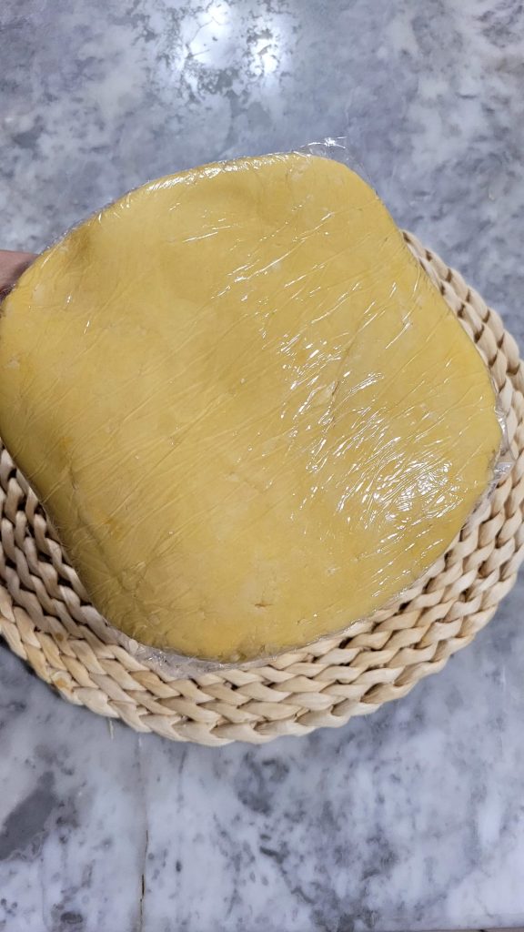 • Wickeln Sie den entstandenen Teig in Frischhaltefolie ein und legen Sie ihn für 30 Minuten in den Kühlschrank oder für 15 Minuten in den Gefrierschrank
