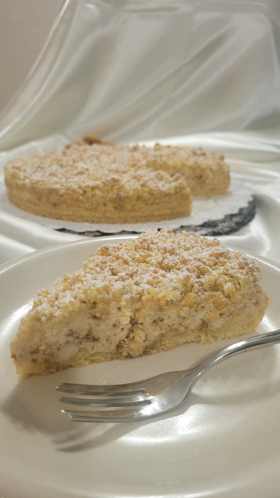 Dieser Sbröselkuchen mit Ricotta und Amaretti ist ein altes Rezept von meiner Schwiegermutter, das sie mir vor einigen Jahren gegeben hat. Sie hat ihn immer im Ofen gebacken, da ich noch keine Heißluftfritteuse hatte, und ich muss zugeben, das Ergebnis ist immer dasselbe… unwiderstehlich lecker! Kennt ihr das, wenn jeder Bissen den nächsten ruft und man nicht aufhören kann? Genau so ist dieser Kuchen und bei uns zu Hause ist er im Nu weg! Es ist eines dieser Desserts, das immer ein großer Erfolg ist und zu den Kuchen gehört, wie der Apfelkuchen, die ich zubereite, wenn ich beeindrucken möchte, sei es für eine Einladung zum Abendessen oder auch zu einem besonderen Anlass.