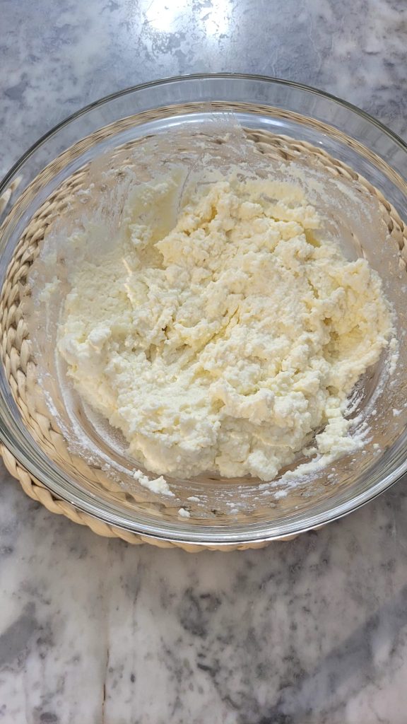 Geben Sie die Ricotta, das Ei und den Zucker in eine Schüssel