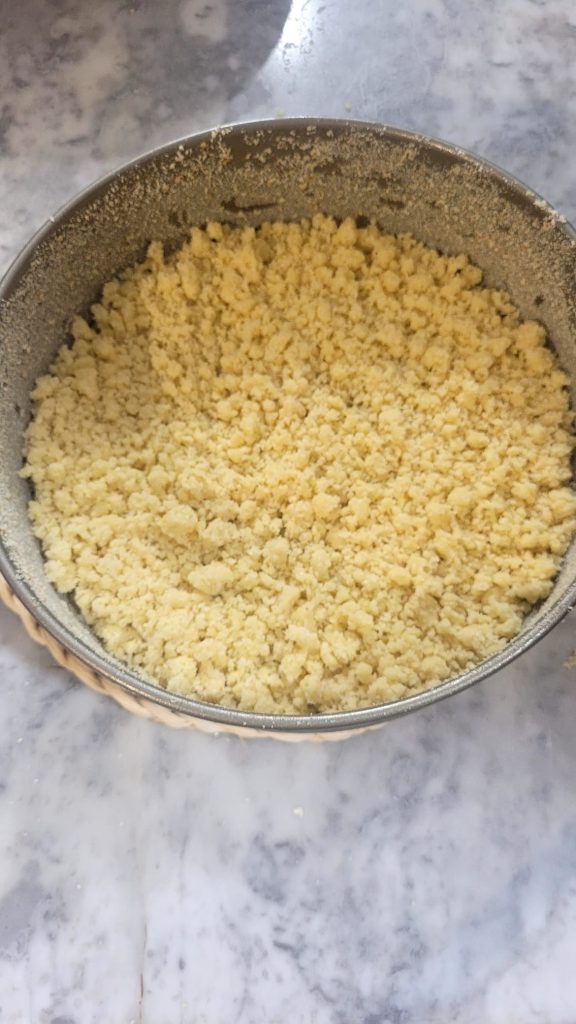 Der Sbröselkuchen mit Ricotta und Amaretti, ob in der Heißluftfritteuse oder im Ofen gebacken, ist sehr einfach zuzubereiten, und ihr braucht weder Küchenmaschinen noch Teigkneter oder Nudelholz, eure Finger sind das Werkzeug, um den „zerbröselten“ Mürbeteig zu machen. Die Füllung des Sbröselkuchens mit Ricotta und Amaretti, ist eine Creme aus Ricotta, Zucker, Eiern und grob zerbröselten Amaretti.