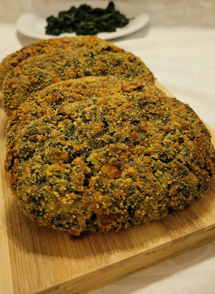 Die Spinat Schnitzel, in der Heißluftfritteuse, sind eine einfache, köstliche und perfekte Idee, um Spinat auch den Kleinsten schmackhaft zu machen. Innen weich, außen goldbraun und knusprig, sind sie in wenigen Minuten zubereitet: Die Heißluftfritteuse ermöglicht eine knusprige Panade mit sehr wenig Öl, wodurch das Rezept leichter, aber dennoch schmackhaft wird. Ideal für ein schnelles Abendessen, als vegetarisches Hauptgericht, aber auch als leckeres Fingerfood. Sie können im Voraus zubereitet und in wenigen Minuten gekocht werden. Ich habe dem Paniermehl ein paar zerbröselte Cornflakes hinzugefügt, wenn Sie welche haben, probieren Sie es aus und Sie werden sehen, wie knusprig es ist.