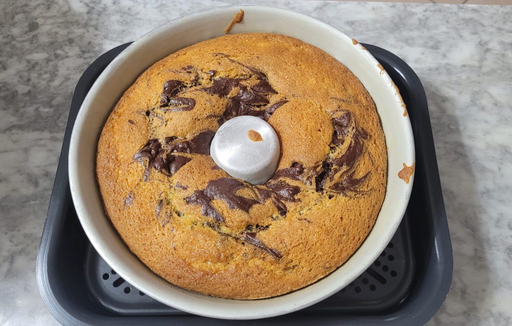 Hier ist ein weiteres Kuchenrezept für die Speisekammer: der zweifarbige Kuchen, gebacken in der Heißluftfritteuse. Einer dieser Kuchen, die nie zum Frühstück oder als leckeres Dessert fehlen dürfen.