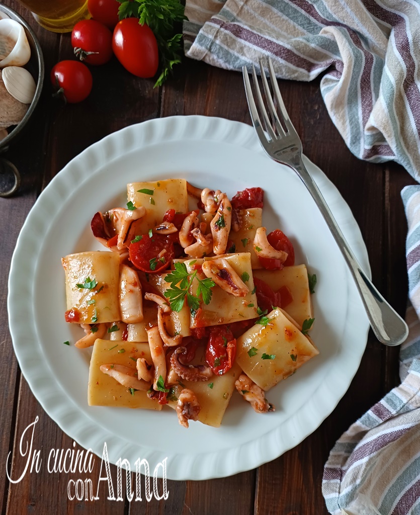 • Die Paccheri mit Tintenfischen und Kirschtomaten sind bereit zum Genießen… Guten Appetit!