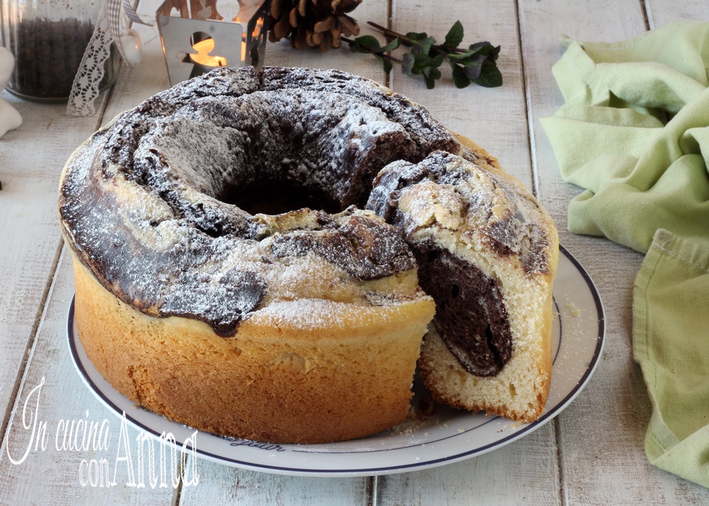 Lassen Sie den Kuchen 15 Minuten abkühlen, stellen Sie ihn dann auf eine Platte und lassen Sie ihn vollständig abkühlen, wenn Sie möchten, bestäuben Sie ihn mit Puderzucker.Der Schokoladen-Marmor-Kuchen vom Café ist bereit zum Genießen… Guten Appetit!