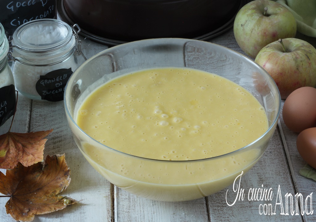 Ihr könnt 3 große Äpfel hinzufügen und einen einfachen Apfelkuchen erhalten.