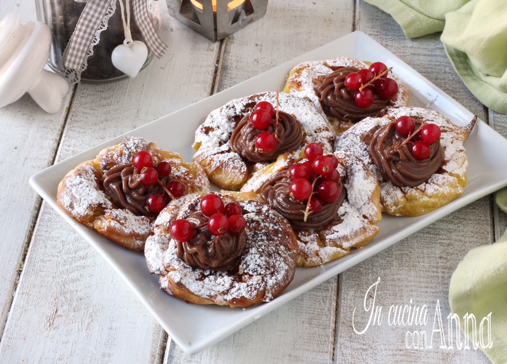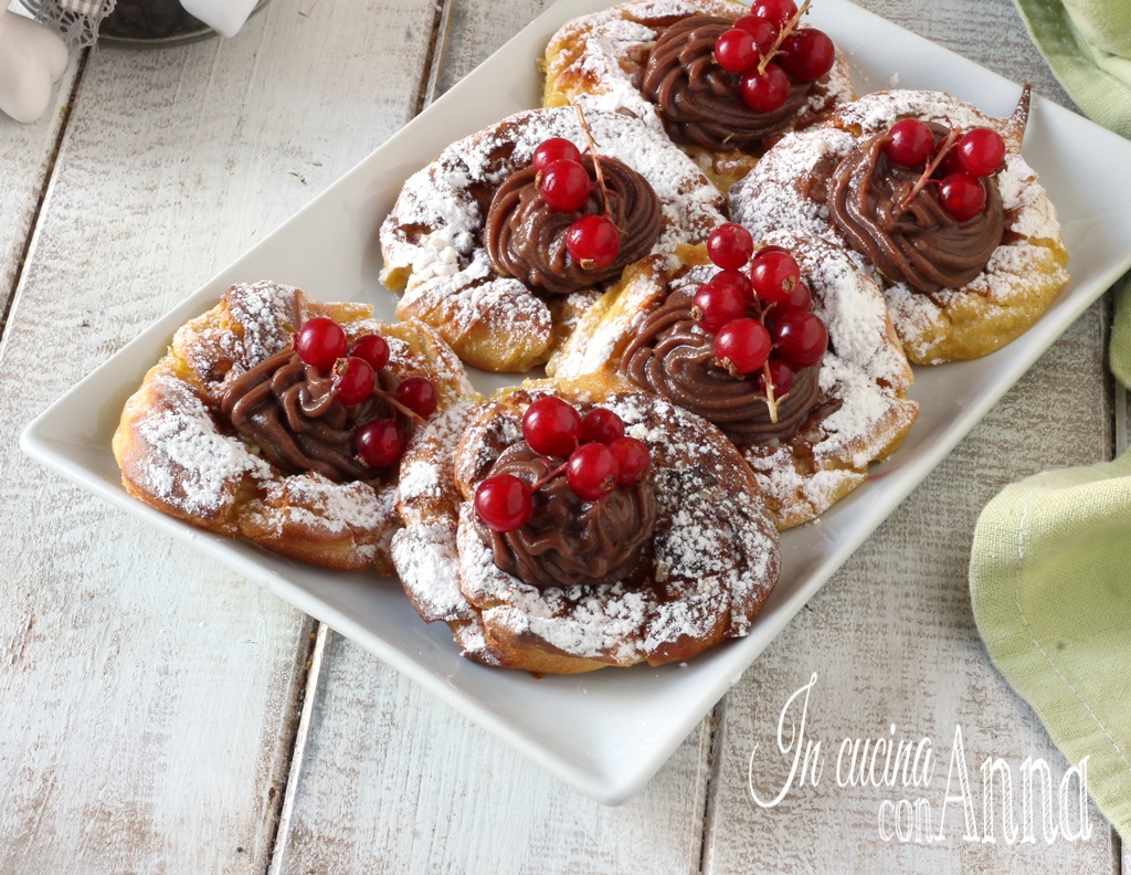 Die Vom Winde verweht sind Gebäckstücke mit einem sehr weichen und feuchten Brandteig dank der Vanillecreme im Teig, die im Ofen gebacken und dann mit leckeren Cremes gefüllt werden; neben den klassischen mit Vanillecreme kann die Füllung verschiedene Geschmacksrichtungen haben: Schokolade, Pistaziencreme, Haselnusscreme, usw…. heute präsentiere ich euch diese mit Schokoladencreme, die cremig und köstlich beim ersten Bissen begeistern werden.