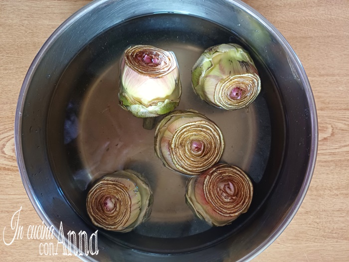 Sobald alle Artischocken gereinigt sind, in reichlich Wasser kochen.
