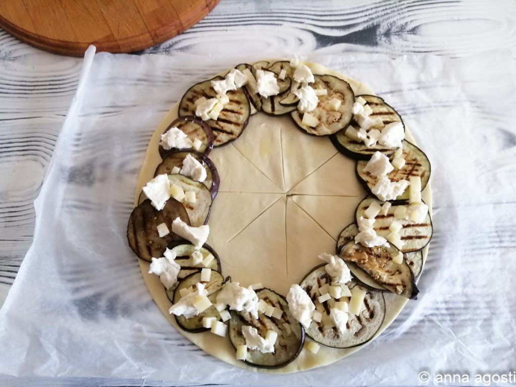 Zubereitung des gefüllten Blätterteigs mit Auberginen und Käse
