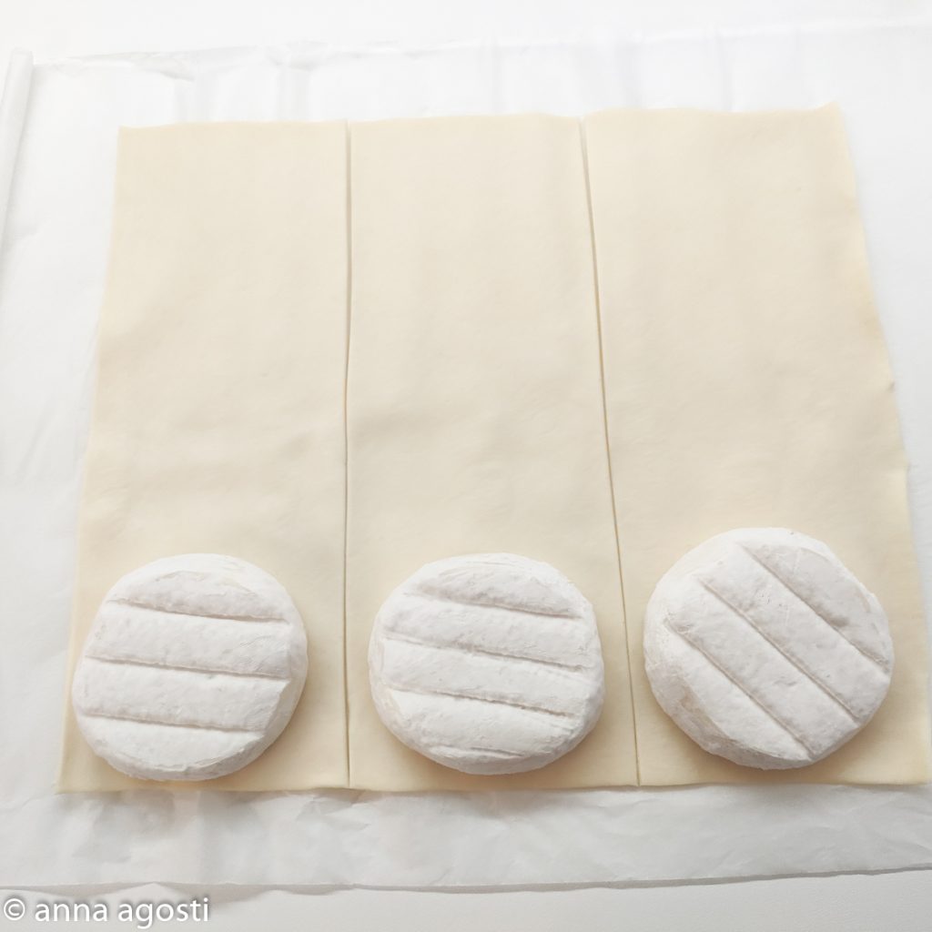 Schneiden Sie Schlitze (nicht tief) in die Oberseite des Blätterteigs.